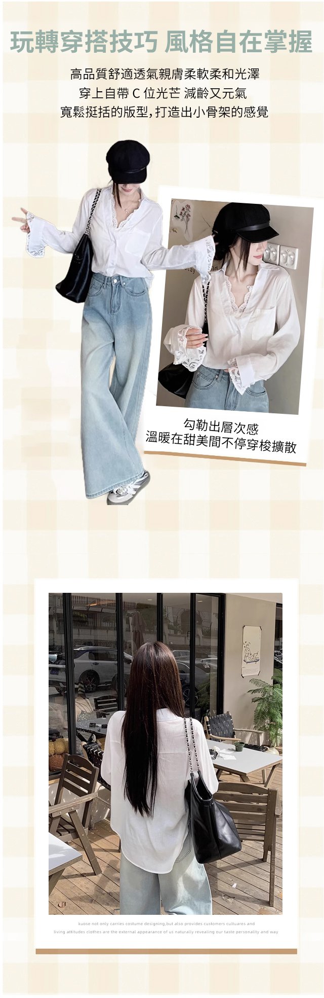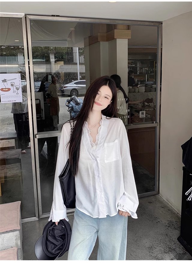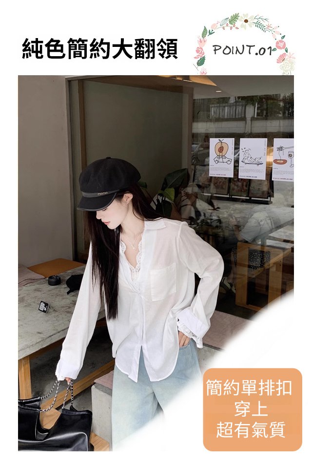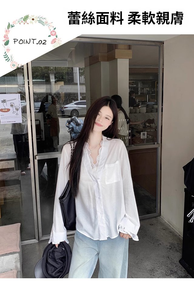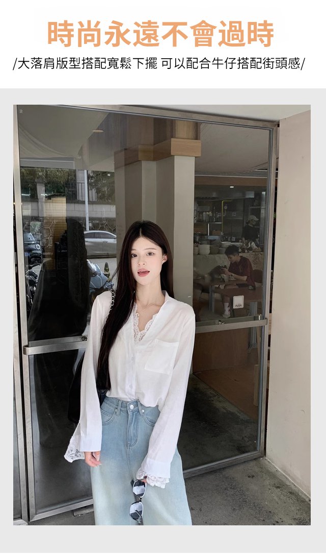 【萬能穿搭】假兩件蕾絲拼接長袖襯衫